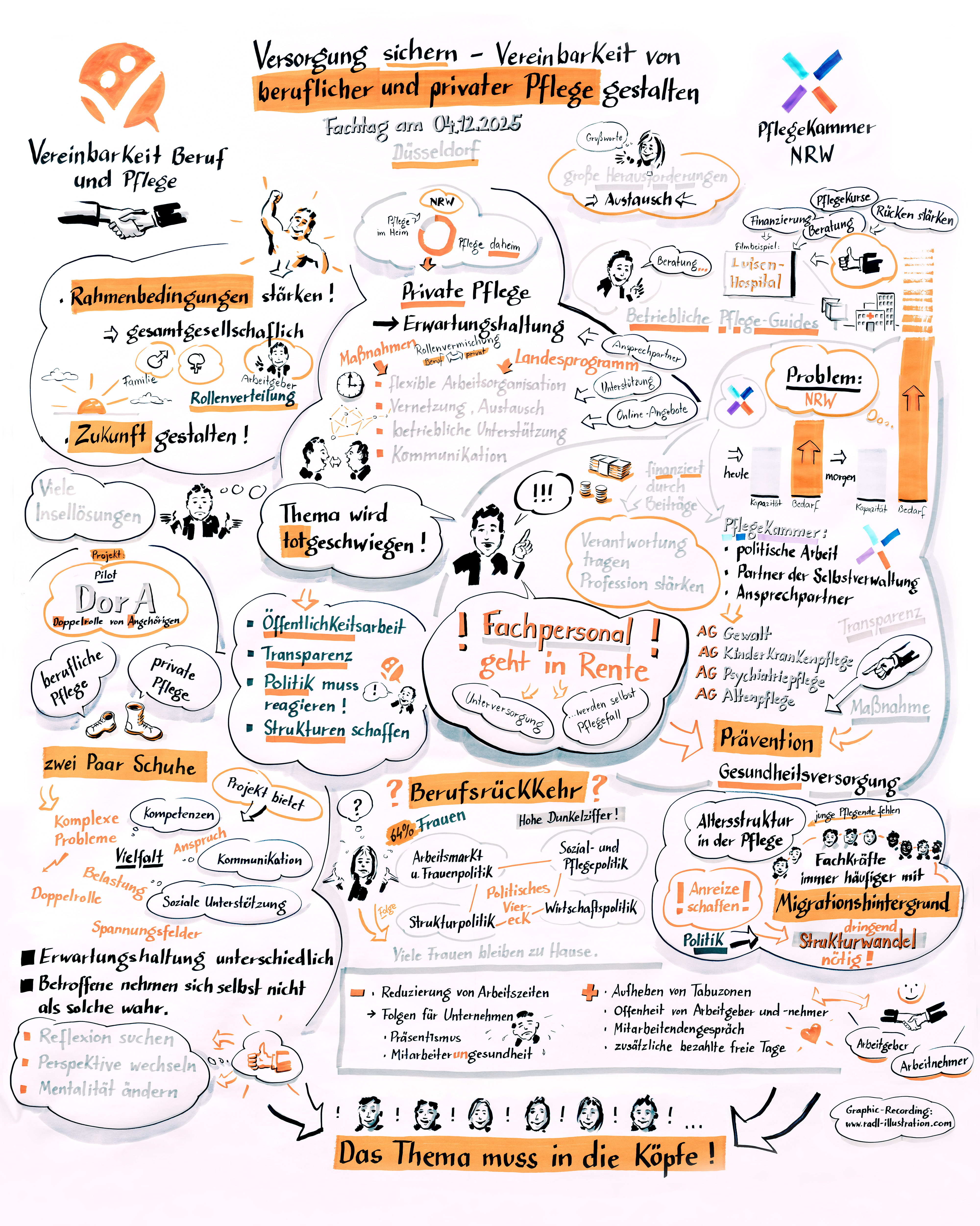 Das Fazit aller Beteiligten: Es ist wichtig, Pflegevereinbarkeit auf vielen verschiedenen Ebenen anzusprechen und umzusetzen. Denn das Thema muss in die Köpfe! Nur so sichern wir die Versorgung von heute und morgen.