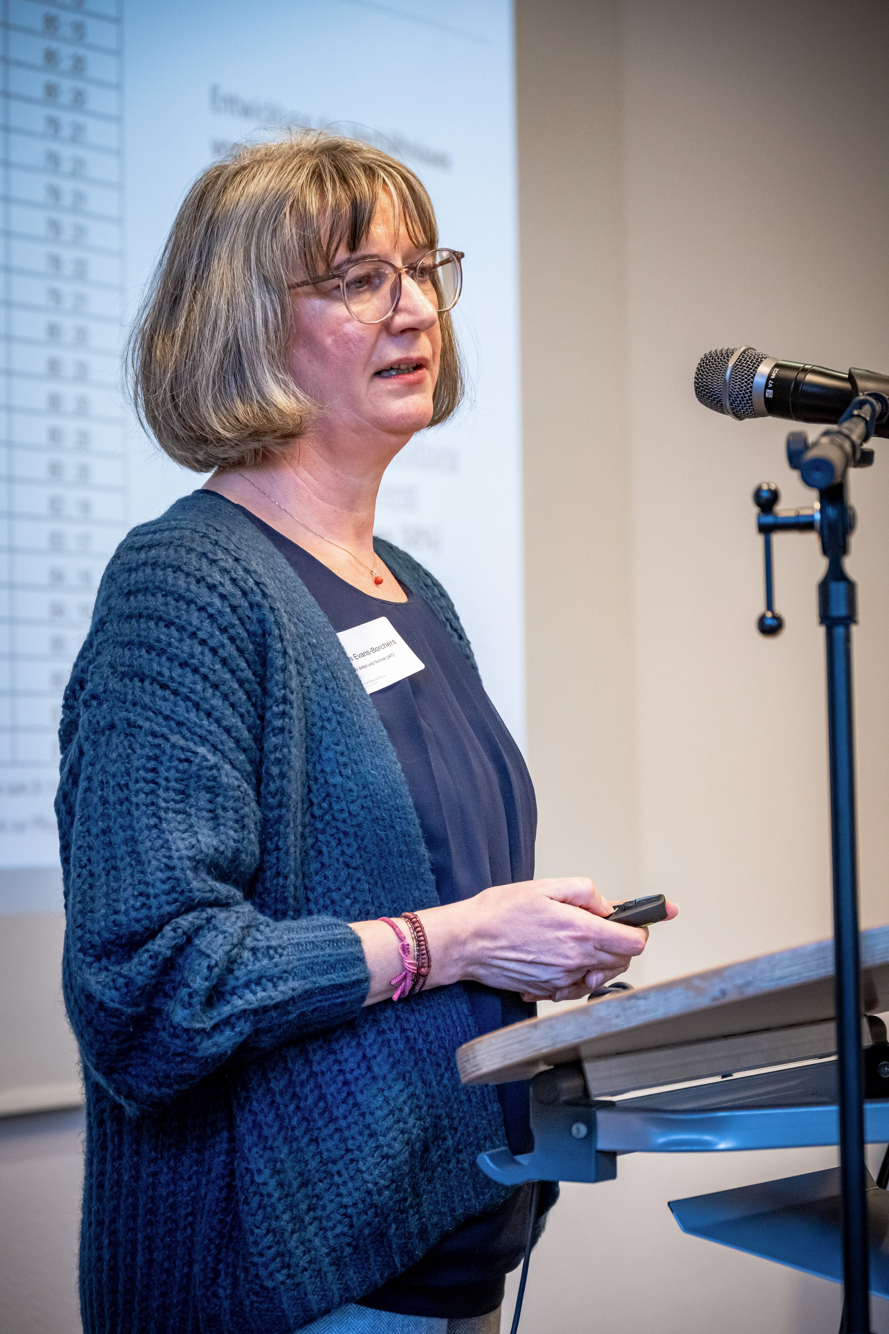 Einen weiteren wichtigen Baustein lieferte Michaela Evans-Borchers, Direktorin des Forschungsschwerpunkts „Arbeit und Wandel“ vom Institut für Arbeit und Technik an der Westfälischen Hochschule in Gelsenkirchen. Ihre Potenzialanalyse zur Berufsrückkehr und Arbeitszeitaufstockung von Pflegefachpersonen verdeutlicht: Hauptpflege(fach)personen sind Frauen, die aufgrund ihrer privaten Pflegeverantwortung ihre Arbeitszeit reduzieren oder ganz austeigen. Gleichzeitig zeigt Evans-Borchers, dass aufgrund des Mangels an jungen Pflegefachpersonen die Sicherung der Versorgung zunehmend von Fachkräften mit Migrationshintergrund getragen wird. Hier ist dringend ein Strukturwandel nötig, denn eine gute Vereinbarkeit von Arbeitsbedingungen und privater Pflegeverantwortung kann entscheidend dazu beitragen, Fachkräfte im Beruf zu halten oder zurückzugewinnen.